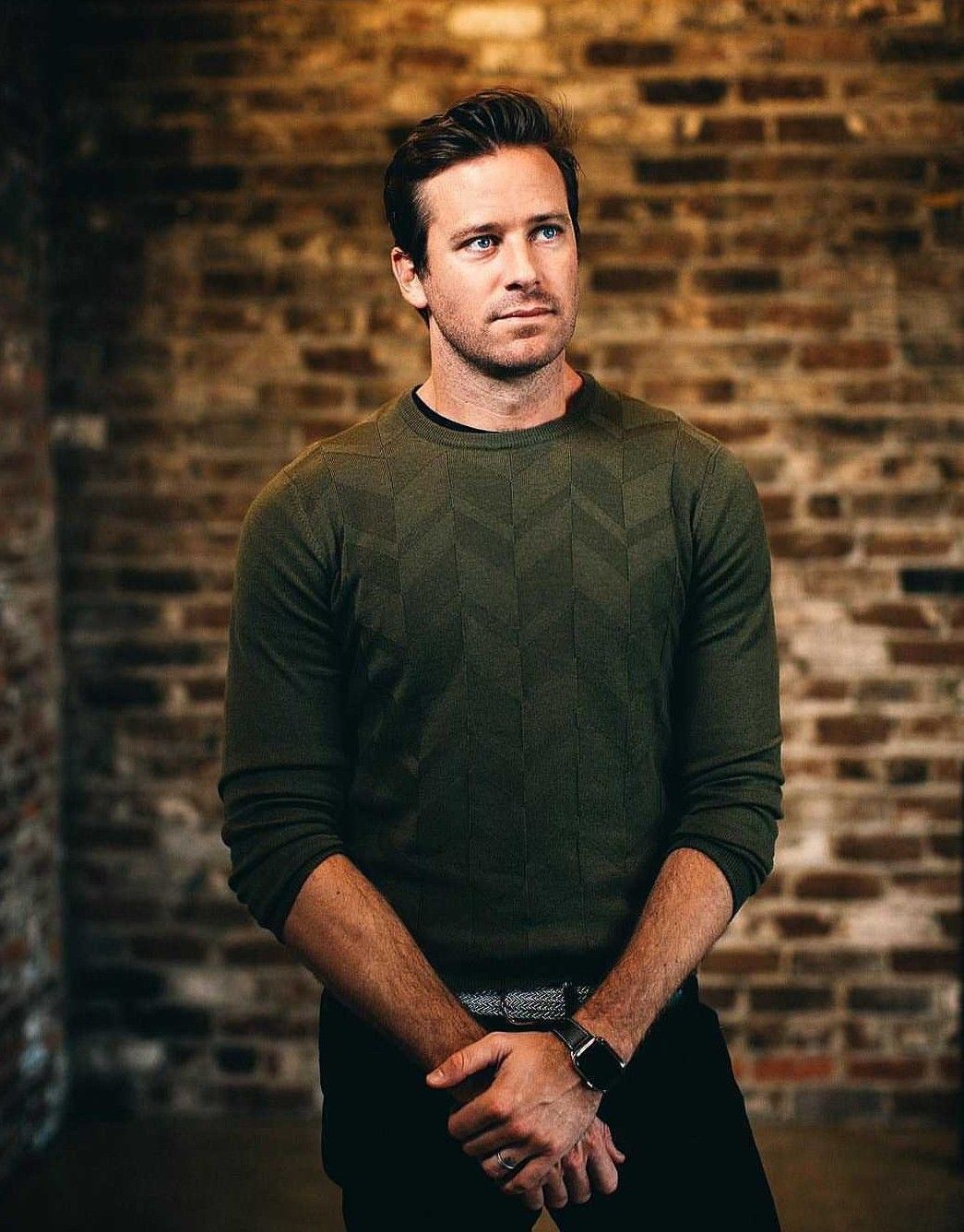 He's a tall drink of water, and well-built. He's handsome in the classical sense, with a defined jaw, larger than average vivid blue eyes, and a strong brow. He's very tall at 6'4", a fact that he's conscious of and tries to downplay. He almost always keeps a light beard on his face, and his hair is perpetually in need of a trim. When he smiles, which is often, he tends to look a bit goofy.
