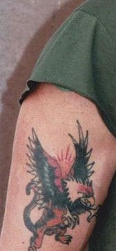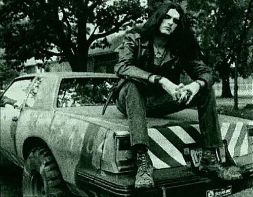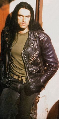 He tends to biker fashion; usually either a white or an army-green muscle shirt, though to maintain variety in his wardrobe, on occasion they have sleeves. His pants are all similar in fit, color, and style but come in a wide range of materials: denim, leather, or both. They're kept up by either a thick black brass-buckled belt or an army-green cloth one, and plain, black cotton socks lurk within laced, well-worn black leather boots.