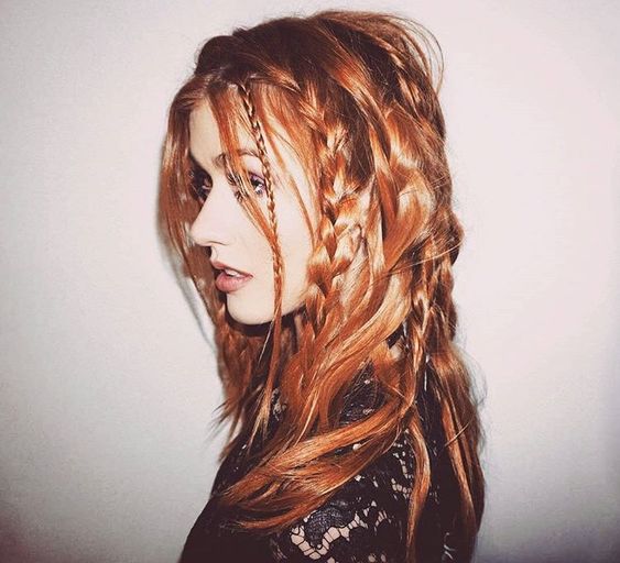 Long copper hair is flowing with gentle waves around her neck and shoulders. Her skin is naturally pale, but her cheeks glow with the vigor of youth, and her eyes are a strange golden brown. There is always an easy smile on her face, with a very light amount of makeup. Often she plays into the expected gypsy vibe by wearing scarves and long flowing clothes.