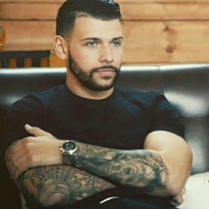 His complexion is on the sun-kissed side of things. Pale blue eyes take in the world around him with an air of aloofness, while his lips, perhaps a bit too full to some, complement rather than take away from the unfairly jaunty grins that are drawn to them. Black hair is worn short and meticulously fixed, suggesting perhaps that he spends a little longer on his hair than he should.