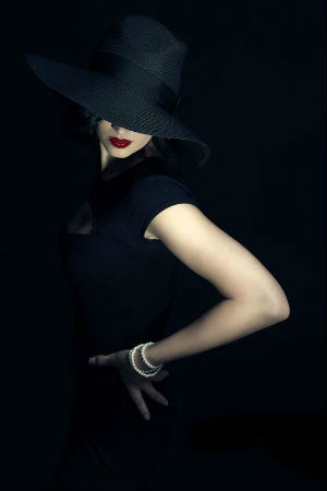 She is slender and clearly sophisticated, if not just for these visible efforts in bringing vintage glamor back to more modern times. Odile Devereux doesn't look older than her late twenties, with hair blacker than night, usually pulled in a neat coiffure to emphasize the sleek, elegant lines of her face, neck and shoulders. Her eyes are of a blue so pale, it straddles the line between striking and disconcerting...if anyone ever sees them anyway, given her preference to wear hats that shadow most of her alabaster complexion, and large sunglasses that take up nearly half of her visage. Pearls and bold lip lacquer add vibrant spots of color to her otherwise monochromatic palette. She is typically dressed in the latest fashions.