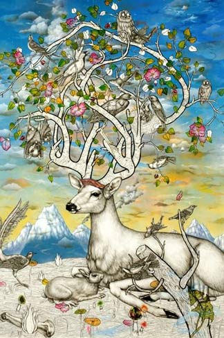 When Roxy uses her Mental Aspect to communicate with others, or those with similar aspect view her Glimmer, she appears as a pure white doe, with a crown upon her head that has aspen branches forming antlers, leaves and flowers blooming among them. There is a timid, skittish essence to this creature.