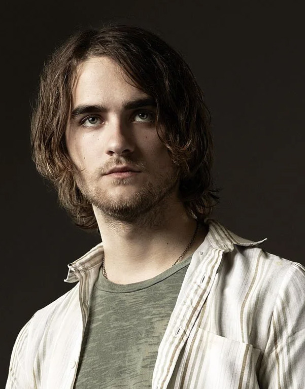 He's not very tall at around five foot night, slim of build and oh-so-scruffy. His haircut was a proper haircut at one point, but it's grown out to brush his collar. It's the kind of hair that would look mussed right out of the shower and stay that way. He has a light beard. Both hair and beard have traces of ginger, but are primarily light brown. All in all, he looks like a grunger who walked right out of 90s. He doesn't wear a plaid shirt around his vest, but he does wear a lot of denim and a beat-up old brown leather bomber jacket that looks at least as old as he is.