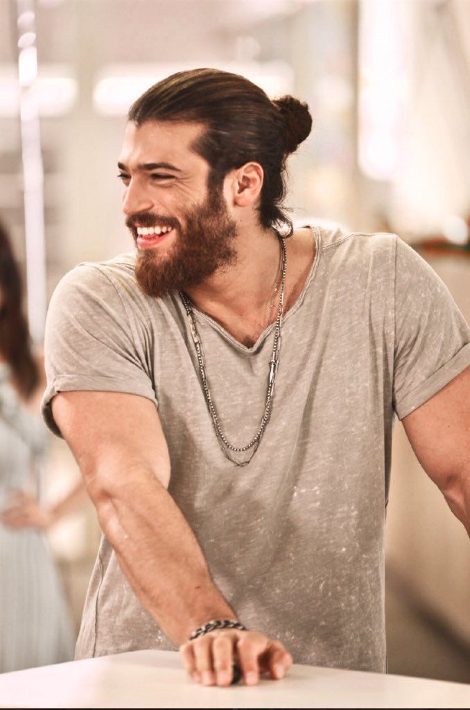 Tall and sturdy, this man has the broadness and build of a fellow unafraid of physical labor, and who exercises and eats extremely well. His complexion is Mediterranean--olive, clear, and healthy, but mature, suggesting a man in his 30s. He wears his hair easily shoulder-length, colored somewhere between walnut and chestnut, often keeping his bangs pulled back, or the entire mane tamed into a bun. It's richly-textured, thick and wavy, and he clearly keeps both it and his full beard in good condition. The latter varies, but is usually kept short-medium in length. His jaw is strong, brows emotive, eyes dark, and smile bright, radiating receptive warmth.