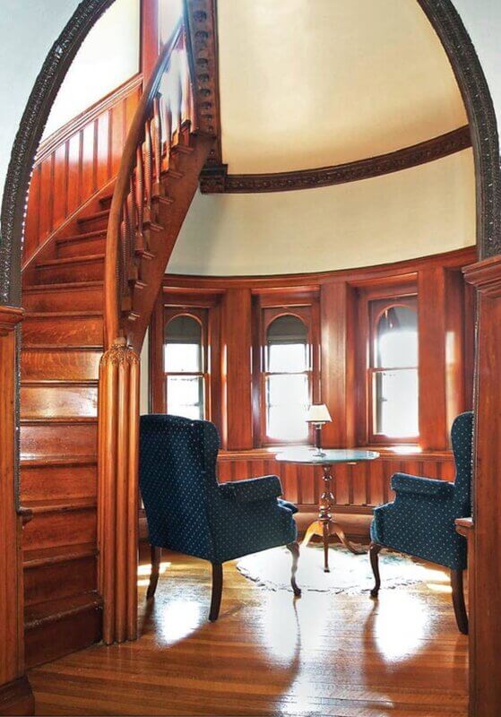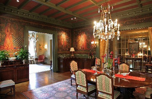 - The exterior grounds; foyer, parlor, library, ball room, and dining room on the ground floor; and master bedroom and bathroom upstairs are part of a museum tour.