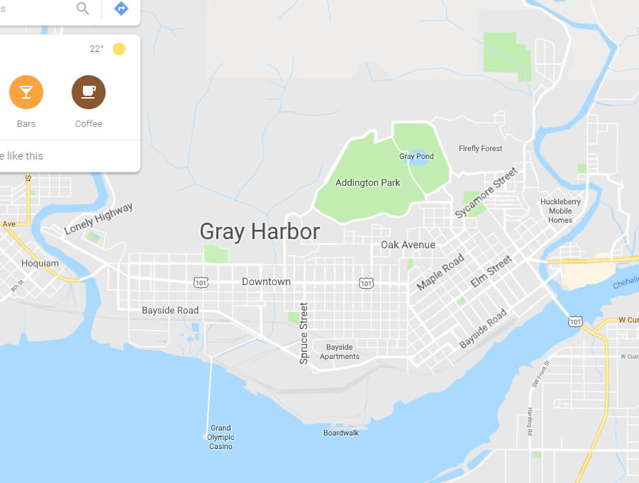 Gray Harbor itself is a quaint town, with a small downtown that branches into several different neighborhoods. To the north lies Addington Park, with the hospital and the school buildings adjacent to that. To the south, the industrial plaza, where the new-and-improved sawmill now lives. To the west are businesses, and to the southeast is the less desirable part of town which features Huckleberry Mobile Park.